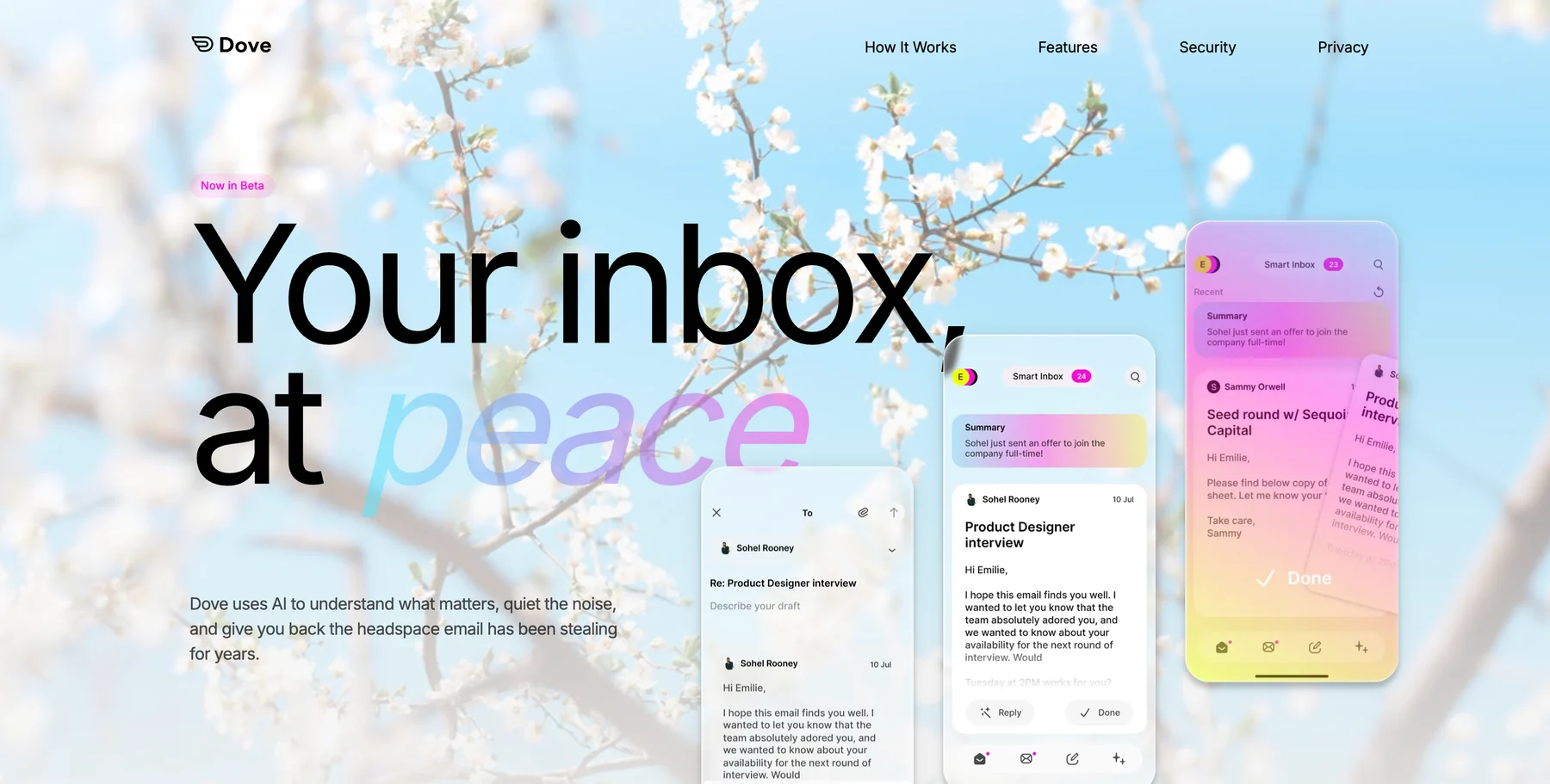 Try Dove → Setup takes about two minutes. The AI starts learning immediately. No credit card, no migration, works alongside your current email app.